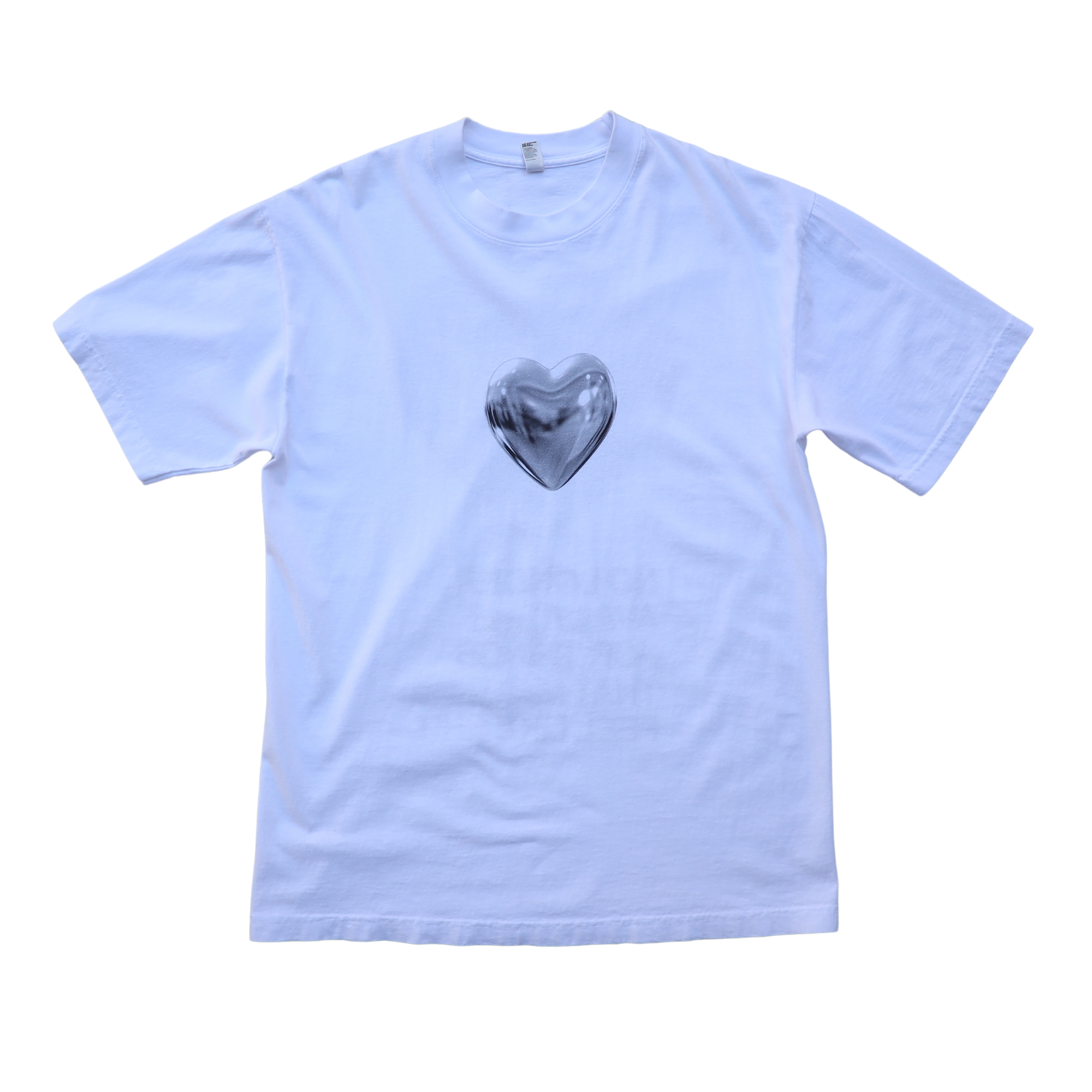 This Silver Heart T-Shirt serves as a daily reminder to prioritize your happiness. With a playful heart design, this shirt will keep you smiling as you do what you love.
